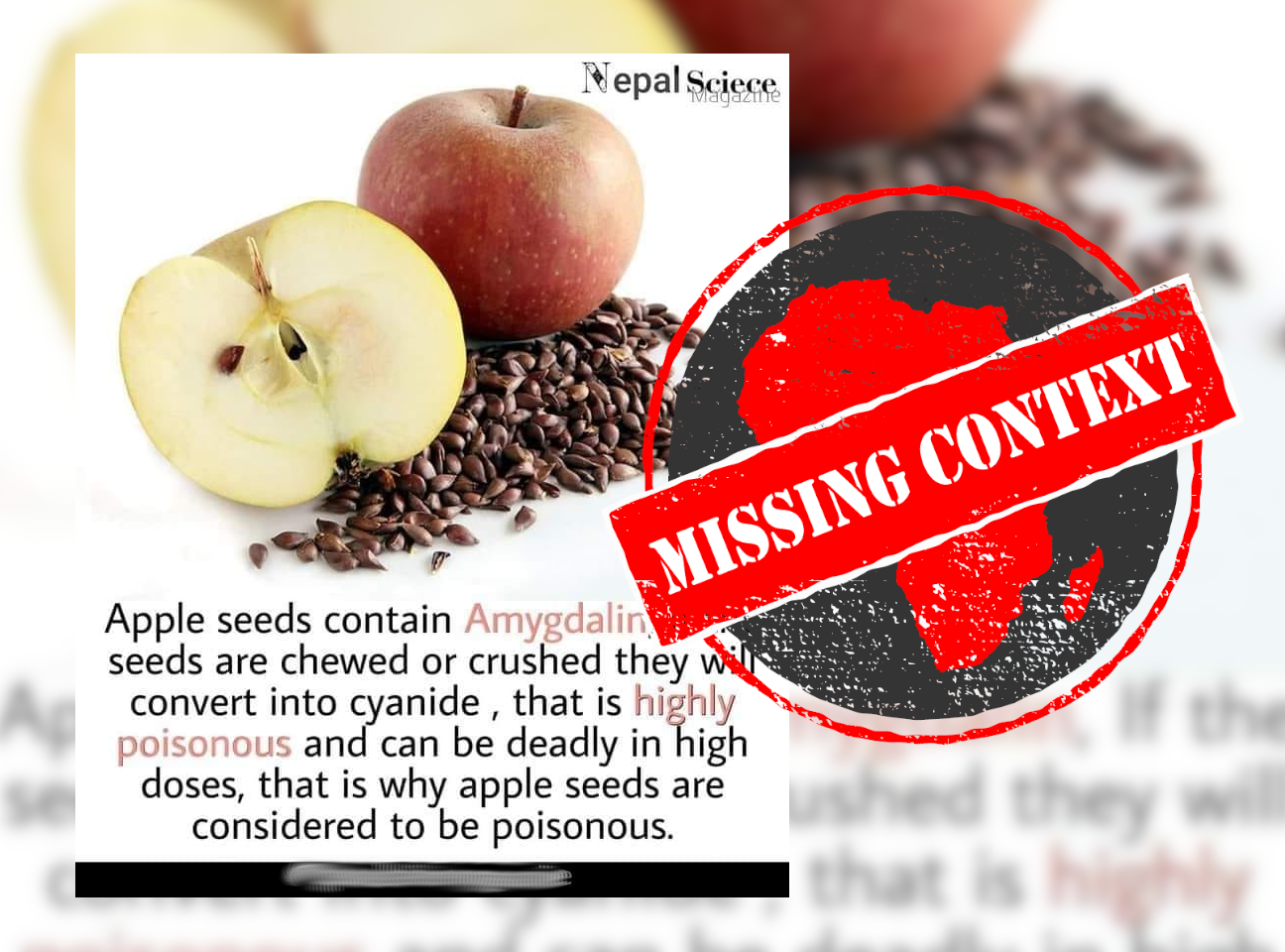But as you bite deep into an apple, you are confronted with something not so sweet in its core: tiny black seeds. Unlike the sweet tang of the fruit, the tiny black seeds are another story. They contain amygdalin, a substance that releases cyanide when it comes into contact with human digestive enzymes. But acute toxicity is rare if you accidentally eat some of the seeds.