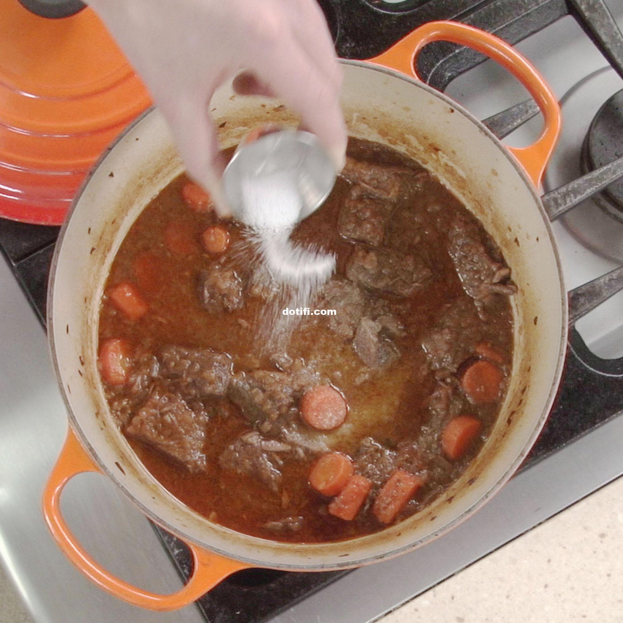 When it came to the beef stew, when we salted the meat before cooking (with 1 1/2 teaspoons of salt) and seasoned the onions (with 1/2 teaspoon of salt) when they went into the pot as directed, the stew and particularly the meat itself were more evenly and deeply seasoned than those in the sample salted only at the finish. Furthermore, as with the carrots, the stew’s gravy tasted far too salty when the salt was added at the end.