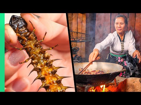 🐛FRIED WATER CENTIPEDE: Clean water centipede with salt. Season with seasoning powder, msg, pepper & Thai pepper. Shallow fry for 15 minutes until crispy.