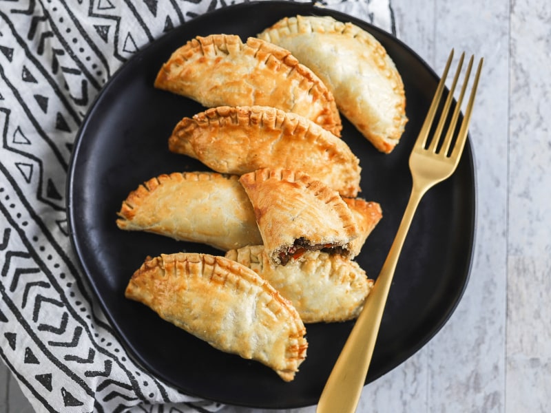 We LOVE empanadas in my house (Who doesn’t?!). I grew up on them and always have leftover picadillo in my fridge or freezer because I make it at least twice a month. These healthy air fryer empanadas are one of my favorite ways to use up the leftovers. Made with frozen store-bought empanada dough, they only take minutes to cook. They’re also excellent to pack in your kids’ lunchboxes – Madison loves taking them for school lunch. If you have an air fryer and need more dinner ideas you can see all my air fryer recipes here!