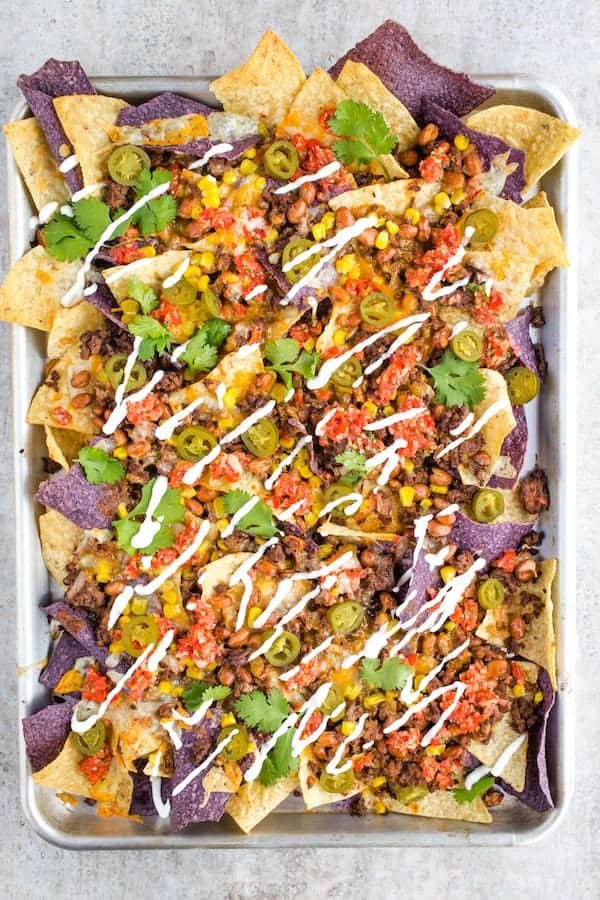 Beef: I browned up my own lean ground beef to add to these tasty nachos, adding protein and more delicious flavor.