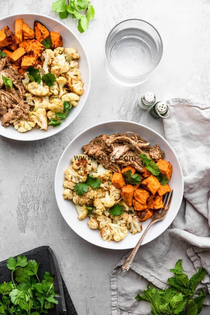 This Instant Pot recipe is recommended to be served with roasted sweet potatoes and roasted cauliflower! Any roasted goodness would pair so well with this chicken, though, including roasted sweet potatoes and brussels sprouts, air fryer roasted potatoes, and cumin roasted carrots!