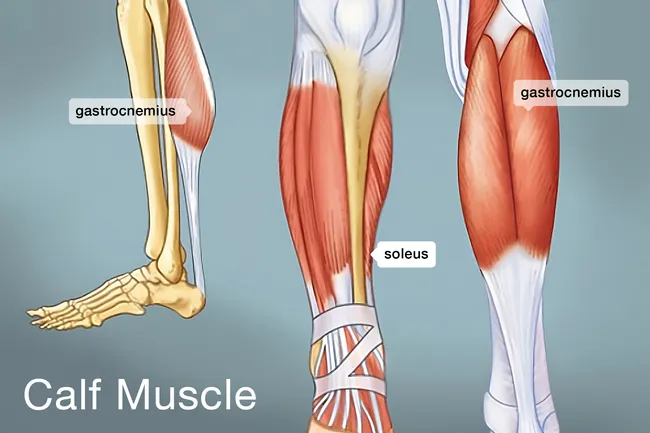 The soleus, which is the flatter, longer muscle running underneath the gastrocnemius and lower down your leg.
