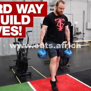 Grab weights and walk across the gym on your tip toes. Worried about looking silly? Then continue to enjoy your skinny calves. Otherwise take some heavy dumbbells for a walk on your toes.