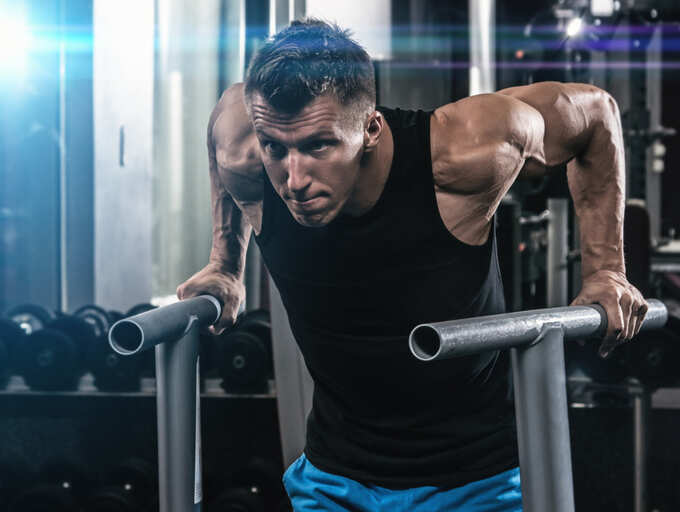 Step 1: Step up on the dip station and hold the handles with both the sides with a neutral grip.