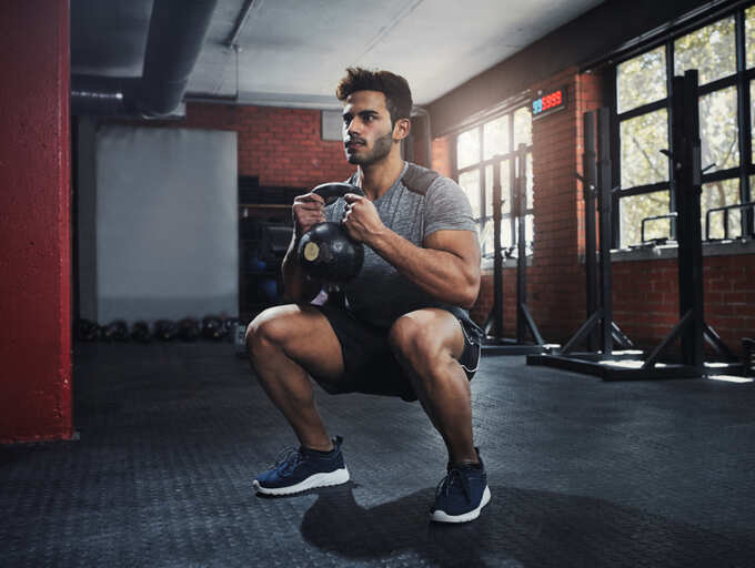 Step 2: Hold a kettlebell or a dumbbell close to your chest with both your hands.