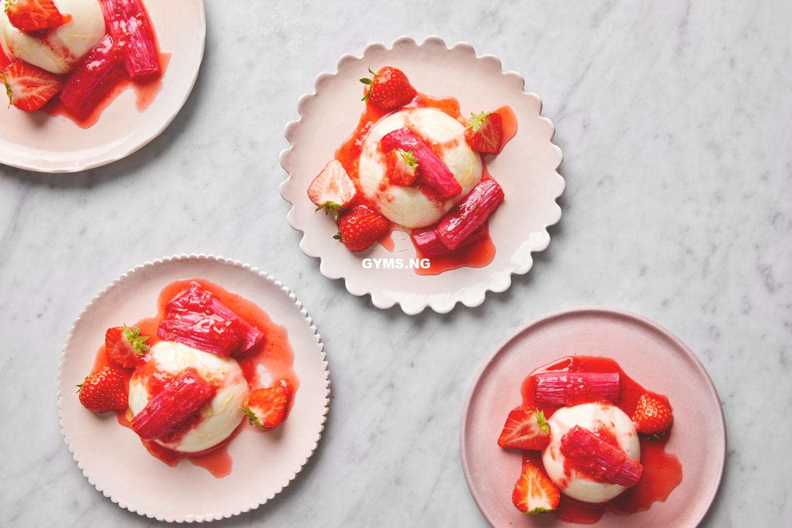 For a lighter spin on a classic panna cotta, this delicate, sophisticated dessert uses natural yoghurt and semi-skimmed milk instead of cream. Serve it with strawberries and rhubarb for a real summer vibe, or swap in any other fruit that’s in season – try baked plums, peaches, cherries, blackberries or raspberries.